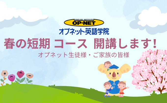 オプネット英語学院会員様 2026年春の短期 コース 開講します! ひとりひとり合ったオーダーメイドレッスン まずはお問い合わせください。 […]