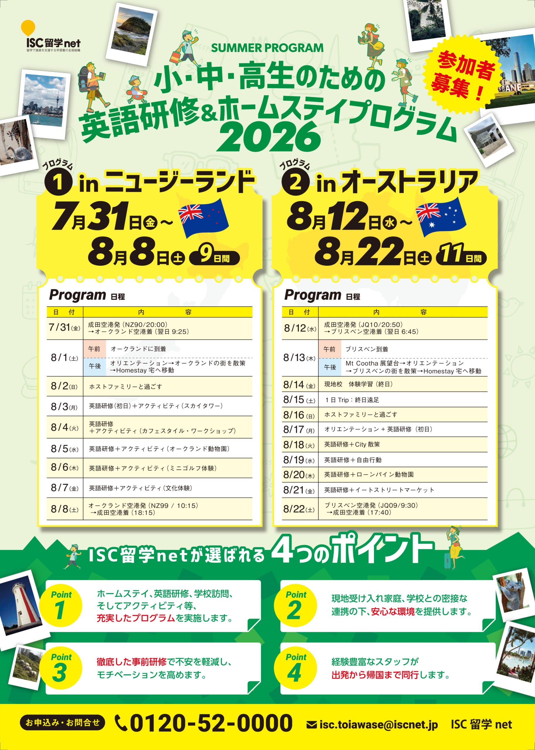 ホームステイプログラム2026【オーストラリア/ニュージーランド】